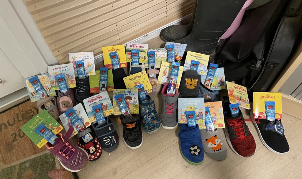 Pünktlich zum letzten KiTa-Tag vor Weihnachten wurden die Weihnachts-Gruppengeschenke des Fördervereins an die KiTa übergeben. Die Wunschzettel wurden fleißig abgearbeitet und die Geschenke mit einem Wert von insgesamt rund 350,- € mit viel Liebe verpackt. Über neue Lego-Duplo-Spielzeuge und Bauplatten, Holzpuzzles, Lern- und Motorikspielzeuge freuen sich nun die Krippenkinder. Auch für die Elementarkinder gab es u. a. einen neuen tiptoi-Stift mit Ladestation, Tonie-Figuren, neue Bücher und Memo-Spiele.