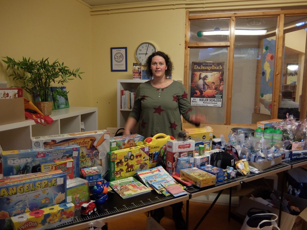 21.10.2018: Flohmarkt in der Kita. Besonderer Höhepunkt war die Versteigerung einer Original-Bodenplatte der Ostseehalle.